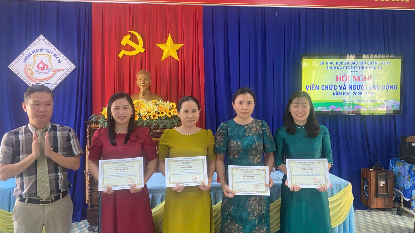Hội nghị cán bộ công chức, viên chức và người lao động năm học 2025 - 2026 của trường PTDTNT THPT Đăk Tô đã thành công tốt đẹp. Kêu gọi toàn thể CBVCNLĐ phát huy những thành tích đã đạt được, phấn đấu thực hiện thắng lợi nhiệm vụ chính trị, tích cực đóng góp công sức và trí tuệ xây dựng Nhà trường ngày một vững mạnh.