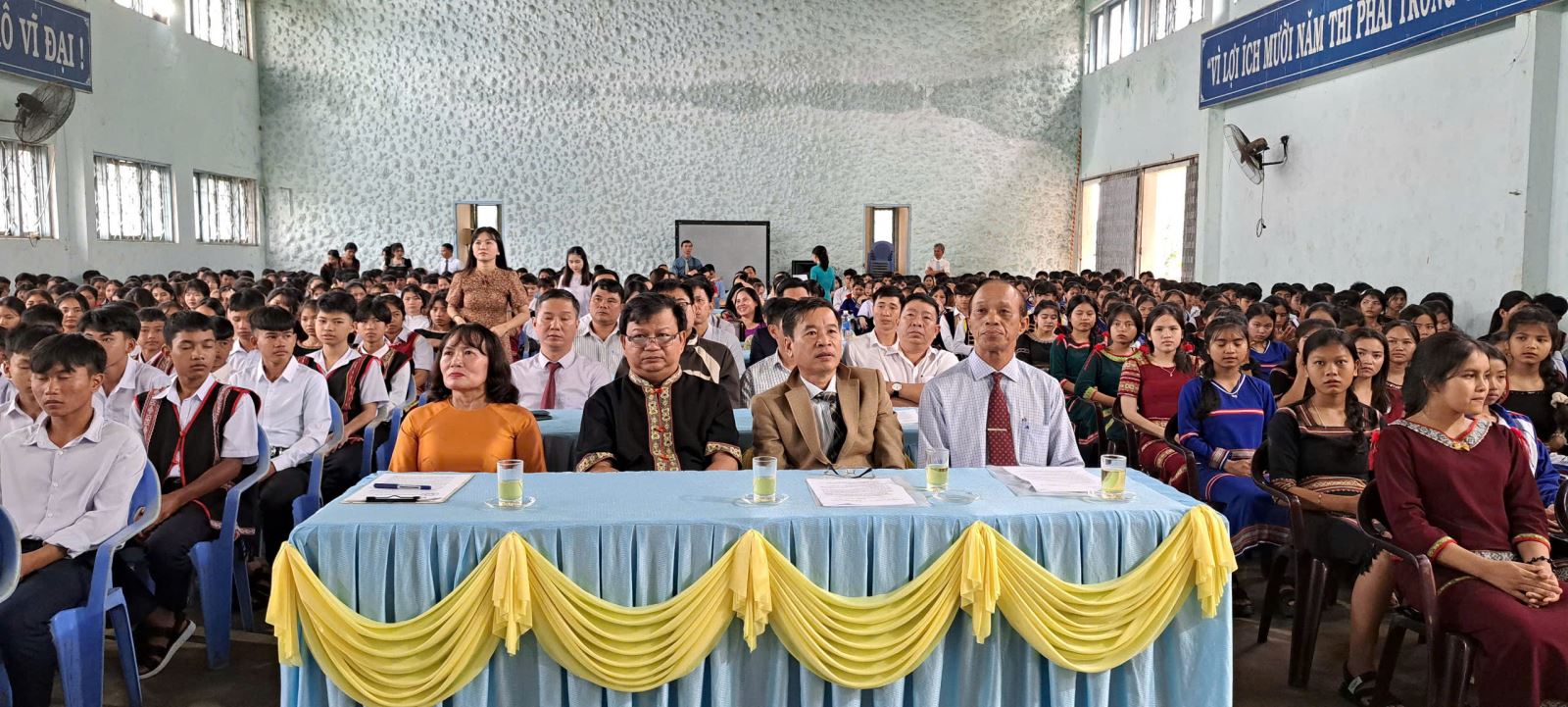 Các đại biểu đại diện chỉ huy quân sự huyện, UBND thị trấn Đăk Tô, huyện đoàn Đăk Tô, Đại diện hội cha mẹ học sinh… cùng toàn thể quý thầy cô giáo, CBNV nhà trường và hơn 400 em học sinh.
