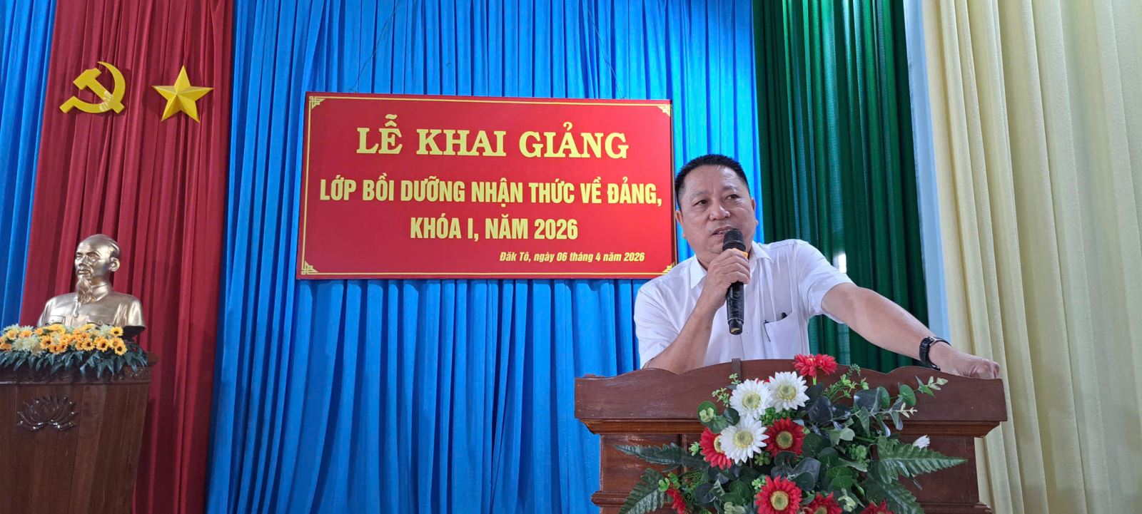 Sáng ngày 06/4/2026, tại Trường PTDTNT THPT Đăk Tô. Trung tâm Chính trị xã đã tổ chức Lễ khai giảng lớp bồi dưỡng nhận thức về Đảng khóa I, năm 2026 trong không khí trang trọng và đầy ý nghĩa.
