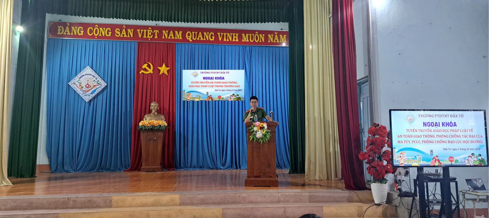 Chiều ngày 02/10/2024, Trường PTDTNT Đăk Tô phối hợp công an huyện Đăk Tô tổ chức tuyên truyền pháp luật với các chuyên đề: